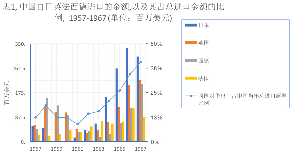 Of course, Takasaki cannot be simply classified as a supporter of the old Japanese policy. In Japan’s post-war political map, the most striking feature of Takasaki is that as a promoter of "diplomacy with communist countries"-Takasaki also participated in Japan’s diplomatic coordination with the Soviet Union, and participated in and promoted the negotiation of Japan-Soviet fishery agreement with Soviet Deputy Prime Minister mikoyan for three times in 1956, 1960 and 1962. At the Bandung Conference, Takasaki seized the opportunity to hold two secret talks with Premier Zhou Enlai, who also attended the conference, and reached a consensus on Sino-Japanese trade and civil goodwill. This has also become an important basis for Japan’s contact with China after 1955. After Bandung, China and Japan shared common interests on the decolonization of Asia and possible economic cooperation in the Pan-Asian region. After the meeting between Zhou Enlai and Takasaki, the two countries made serious efforts to deepen economic ties. In 1957, Japan and China signed two agreements, allowing China to export raw materials in exchange for industrial products and equipment. Although Sino-Japanese trade was interrupted after 1958 due to the Nagasaki flag incident, the trade between the two countries began to resume in 1961, and Japan became China’s largest import source country in 1964 (Table 1).